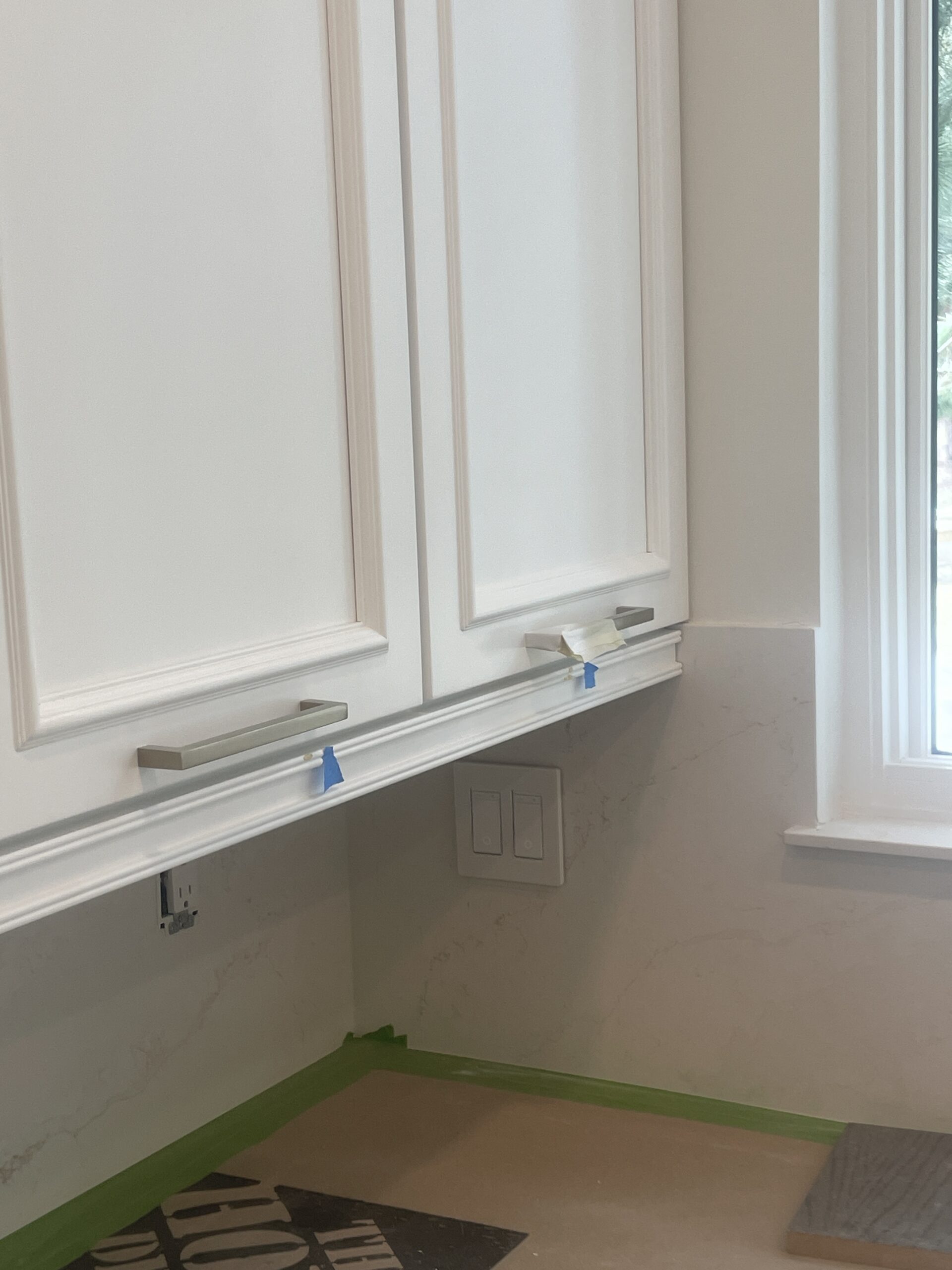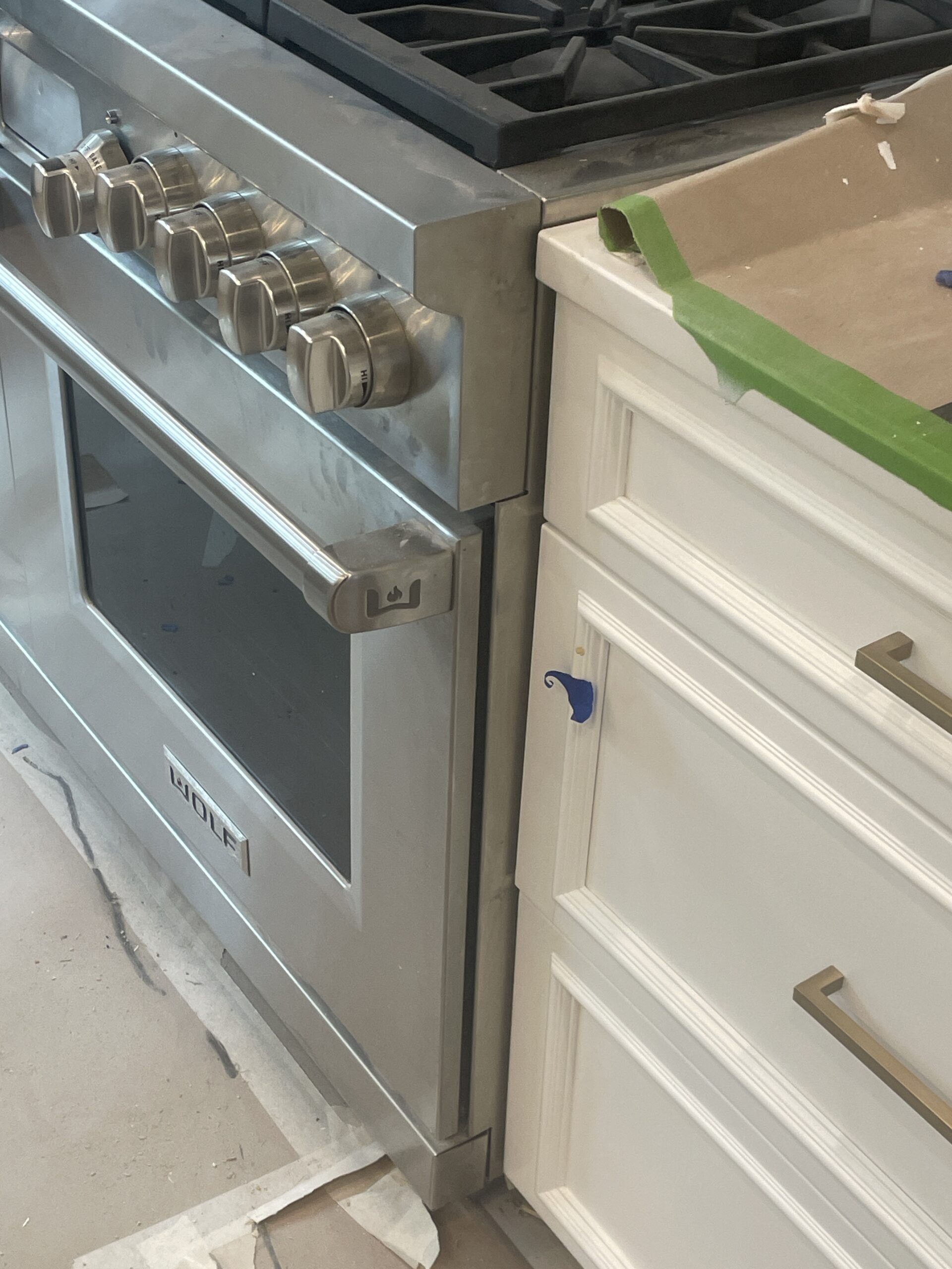 • Masking countertops, appliances, floors, and adjacent walls meticulously